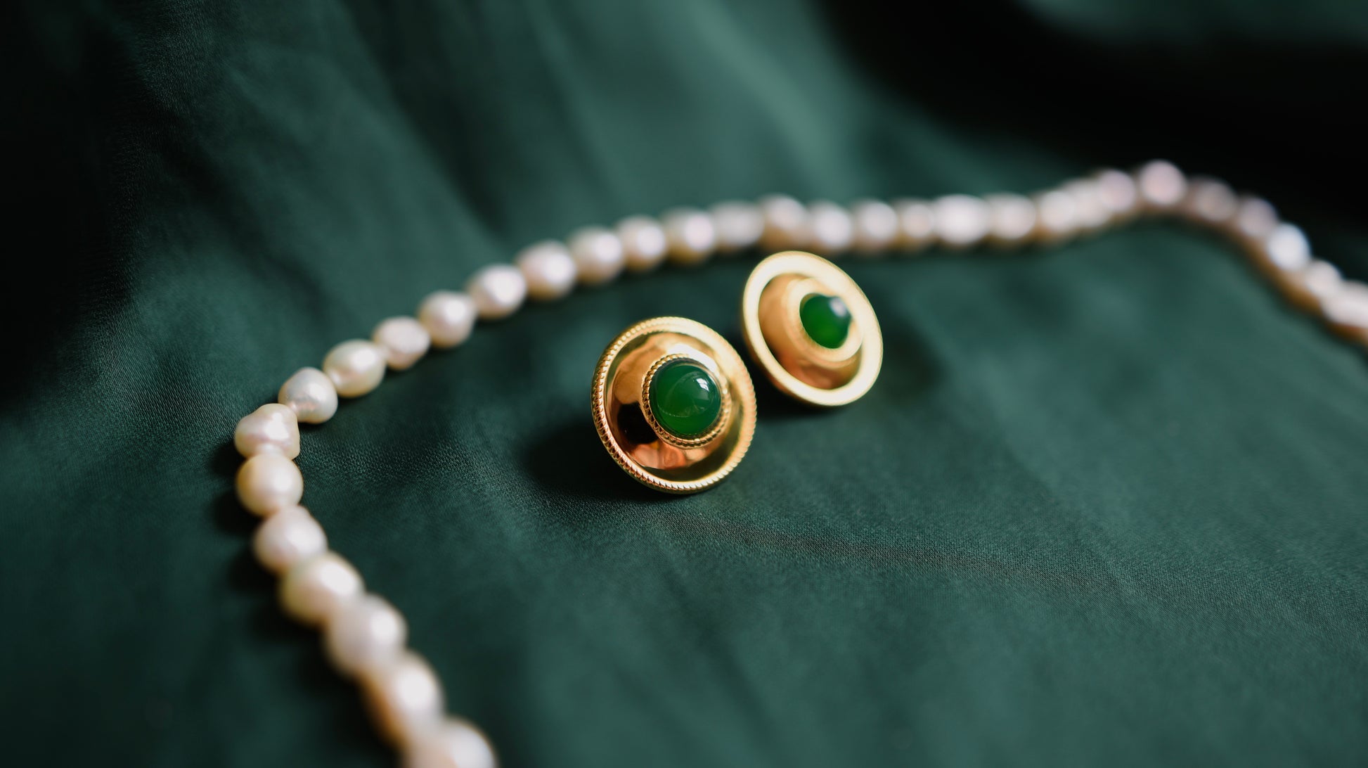 Diese Ohrringe zeichnen sich durch ihre klare, runde Form und den ruhigen Grünton des Steins aus. Klassisch im Ausdruck und ausgewogen im Design verleihen sie jedem Look eine zeitlose Eleganz mit feiner Tiefe.