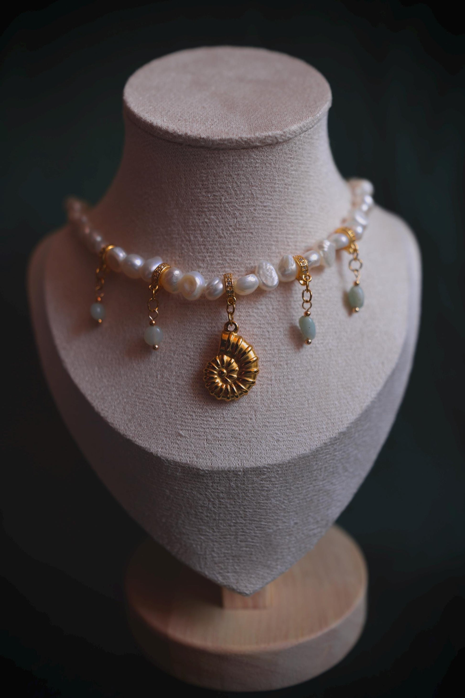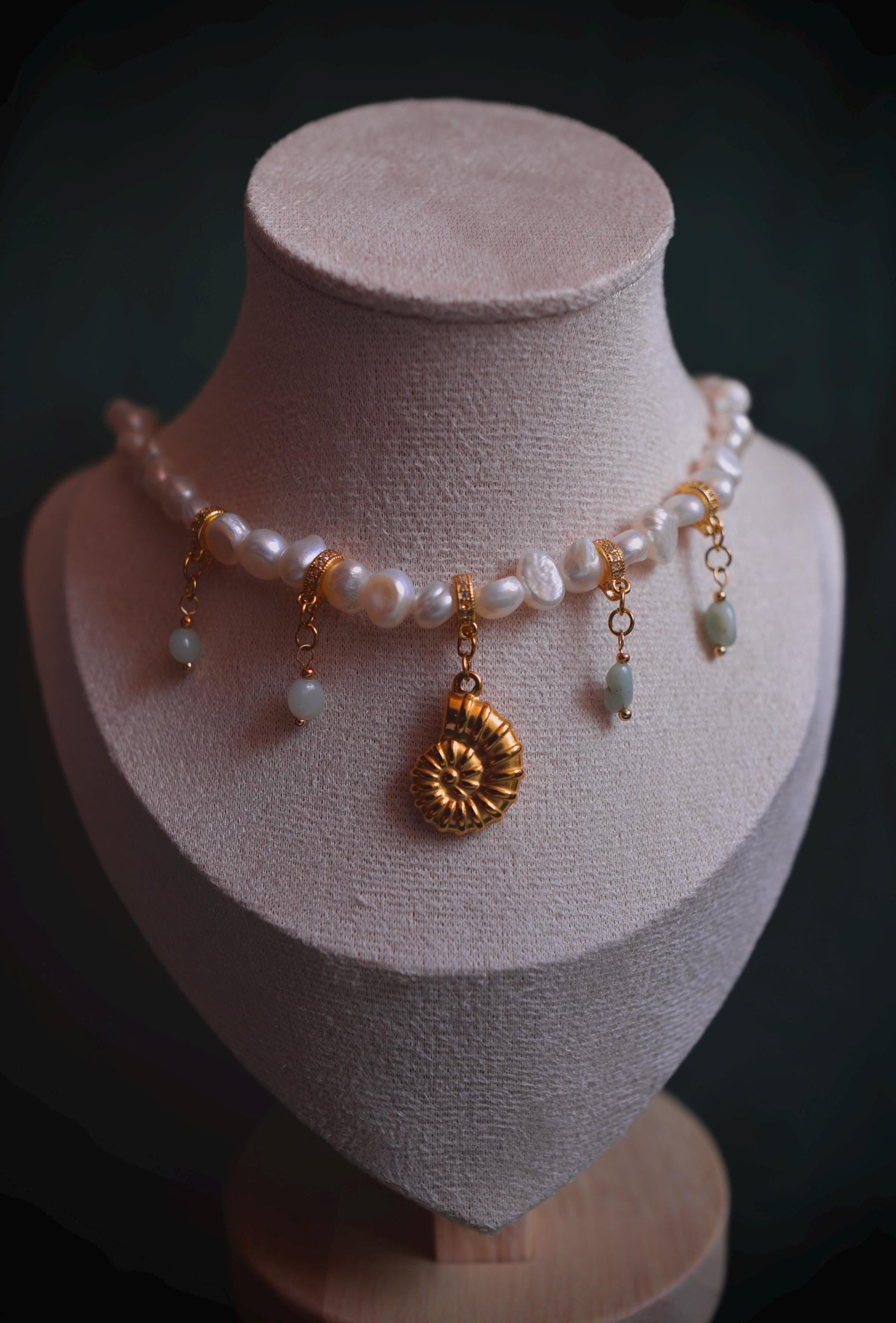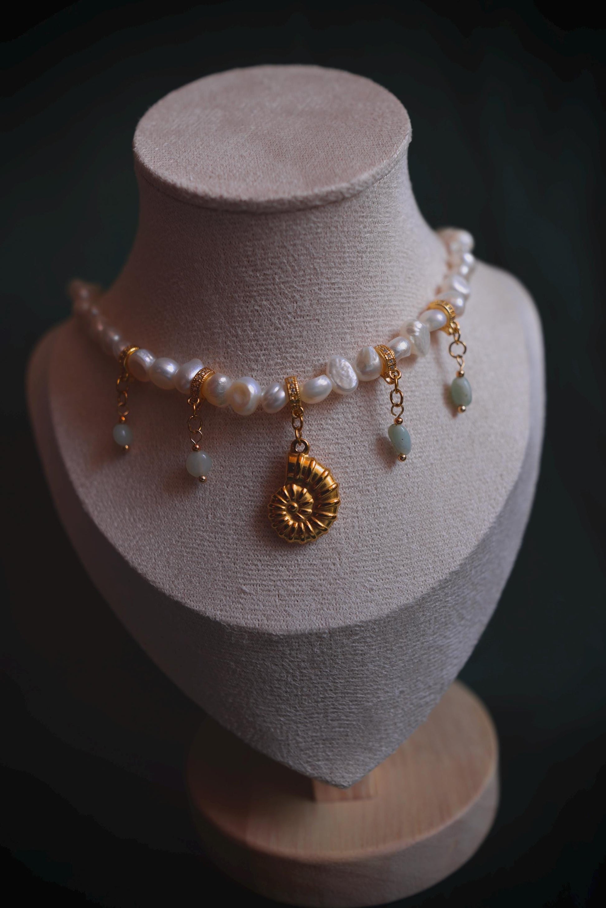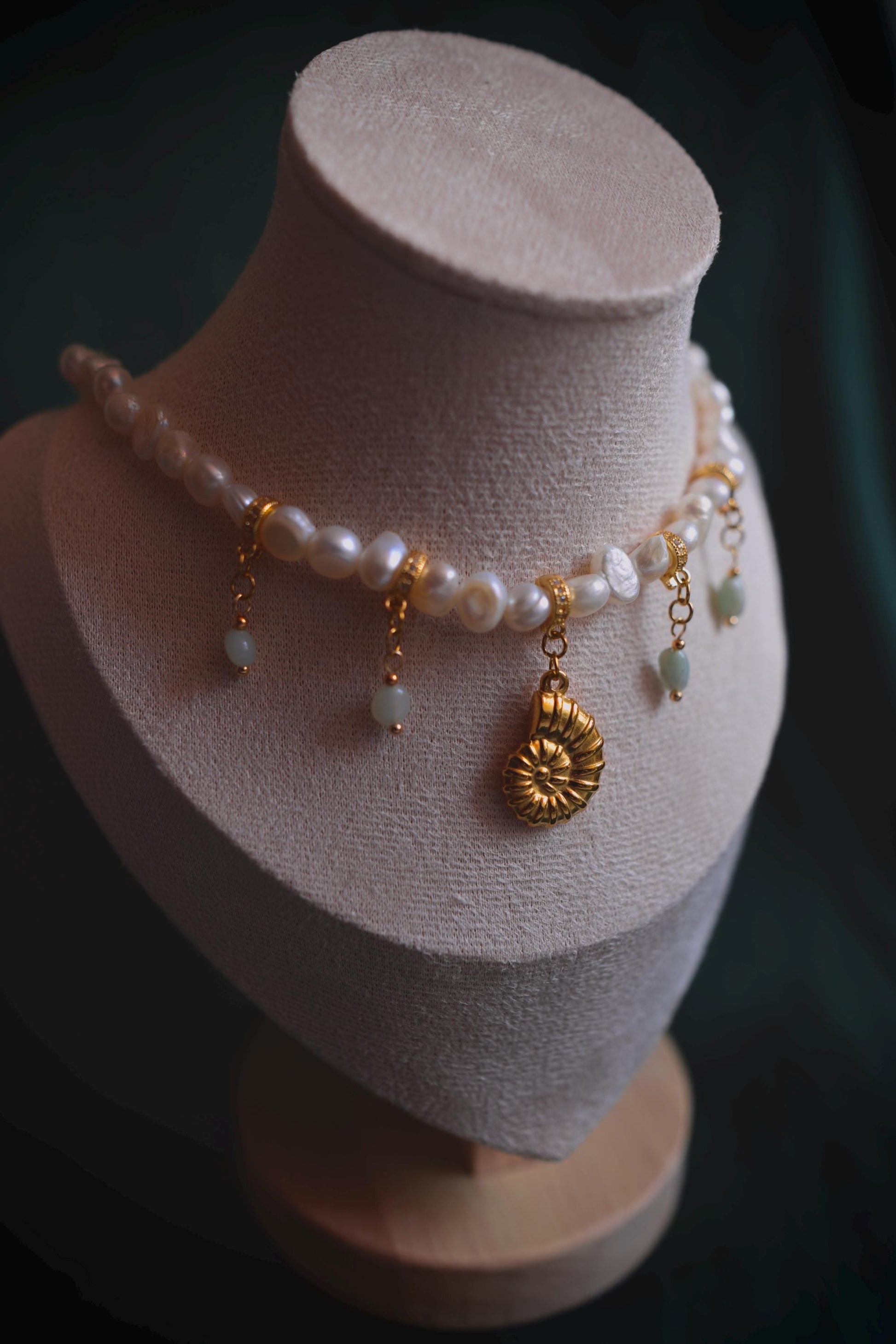 Süßwasserperlen, warm und leicht unregelmäßig, als hätte die Zeit sie selbst geformt.
