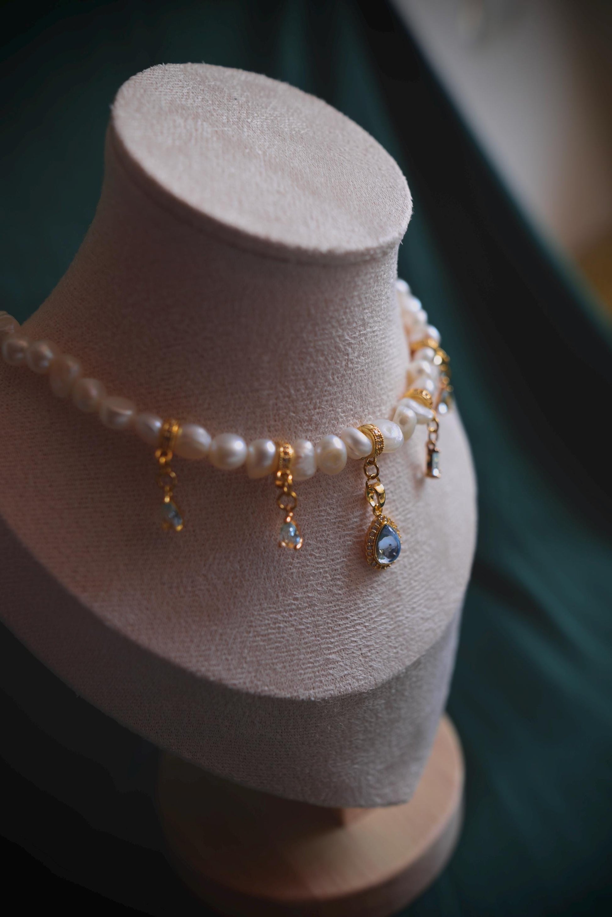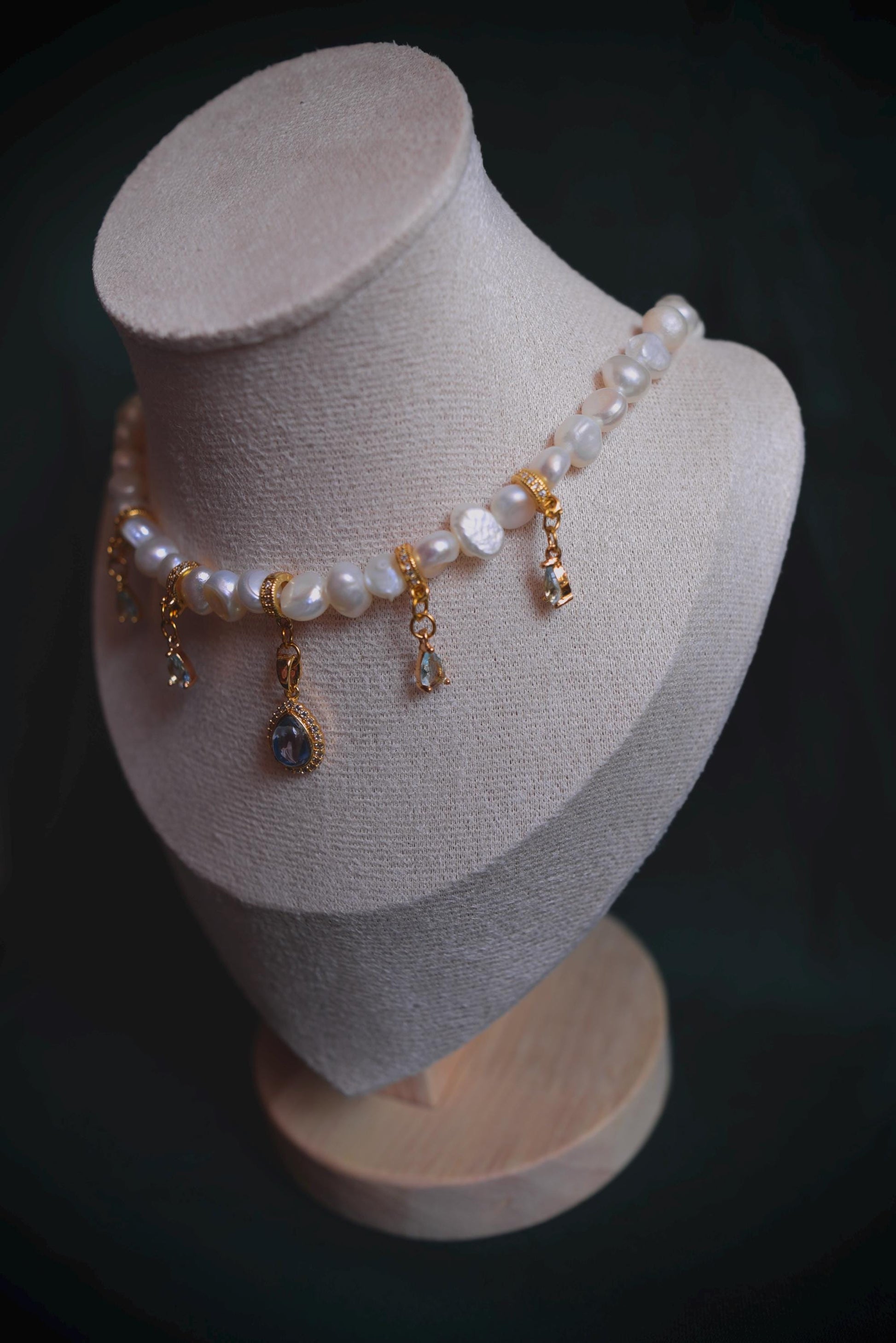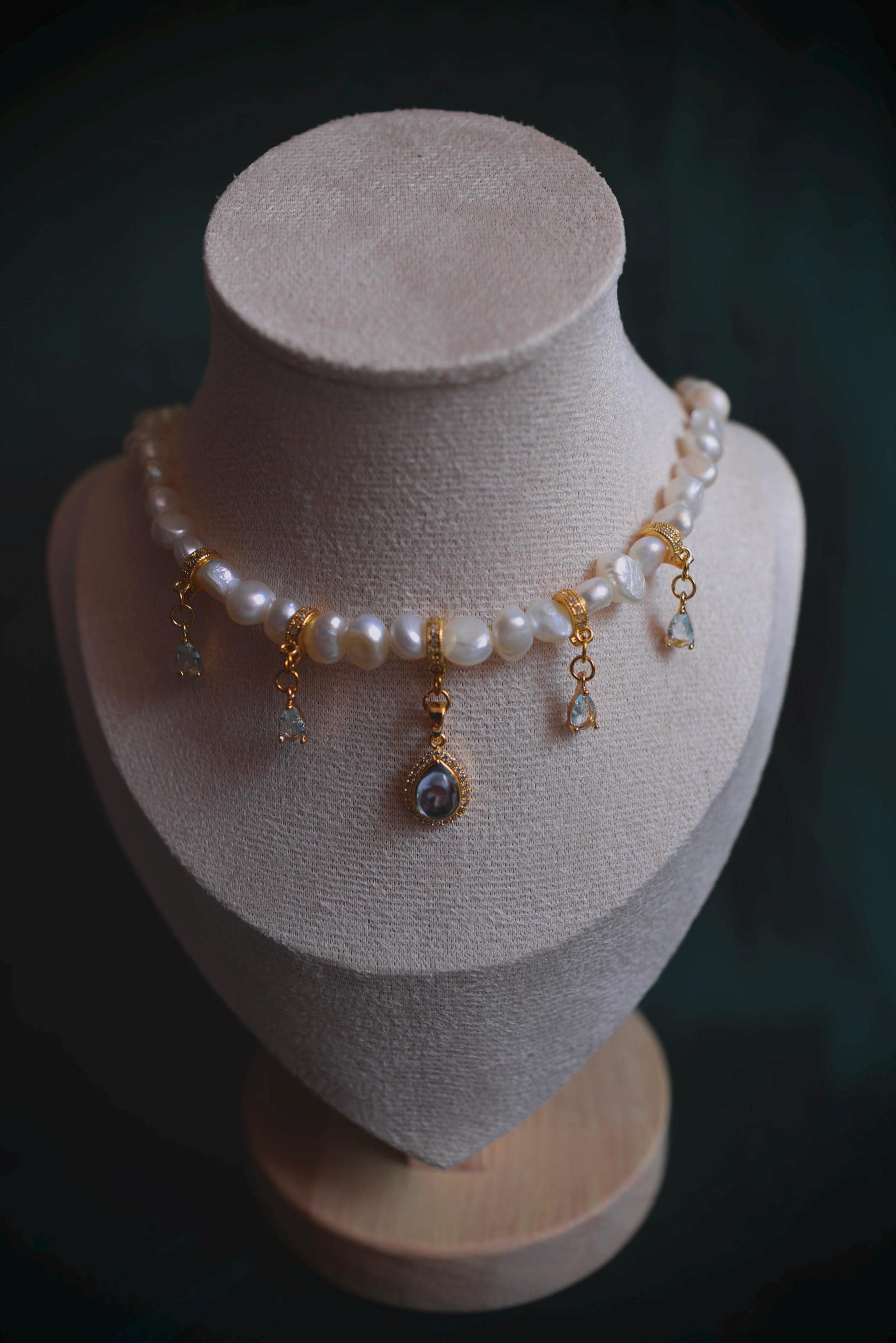 Süßwasserperlen, begleitet von tiefem Mitternachtsblau – leise, weich und von beständiger Klarheit.