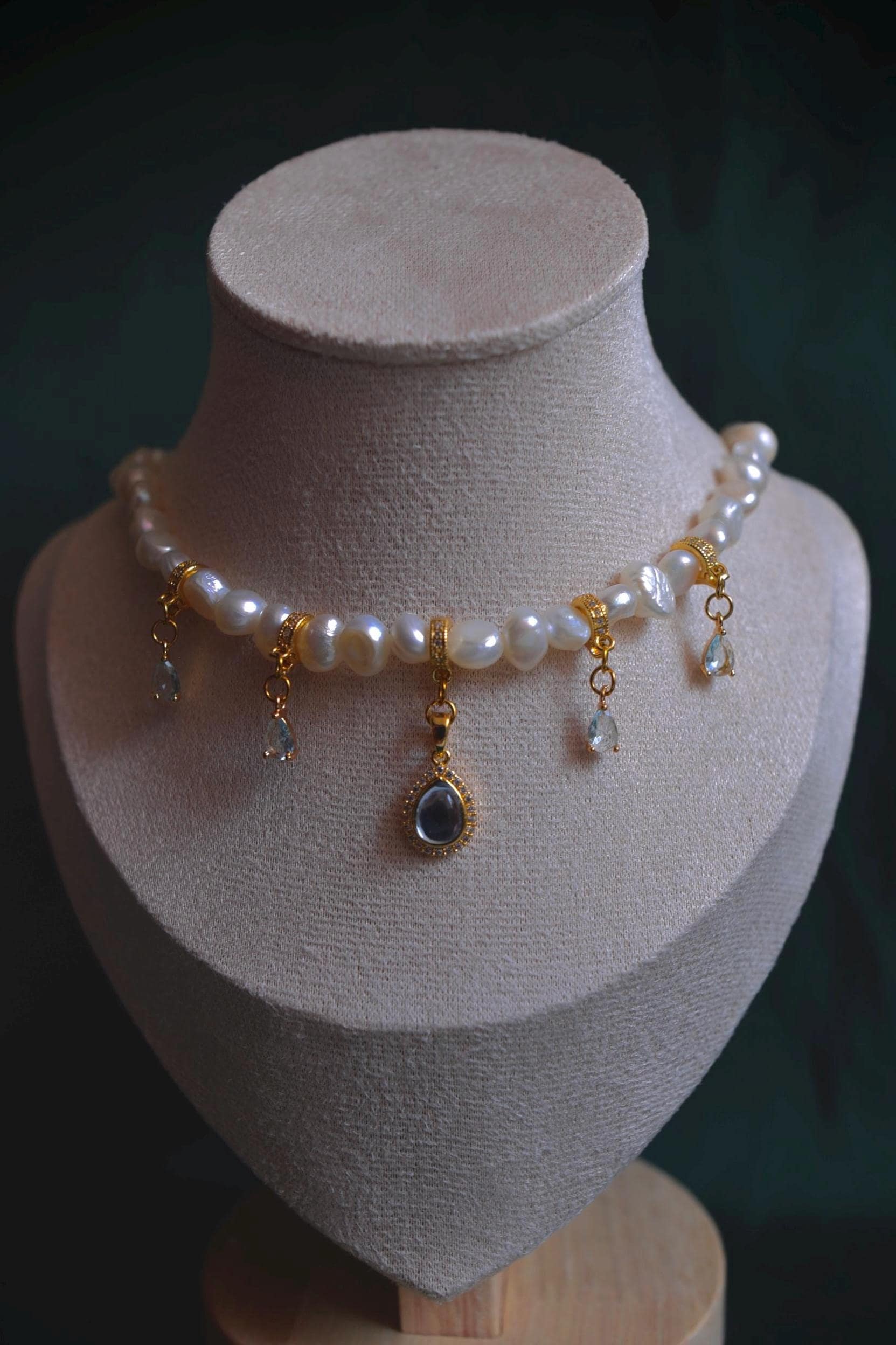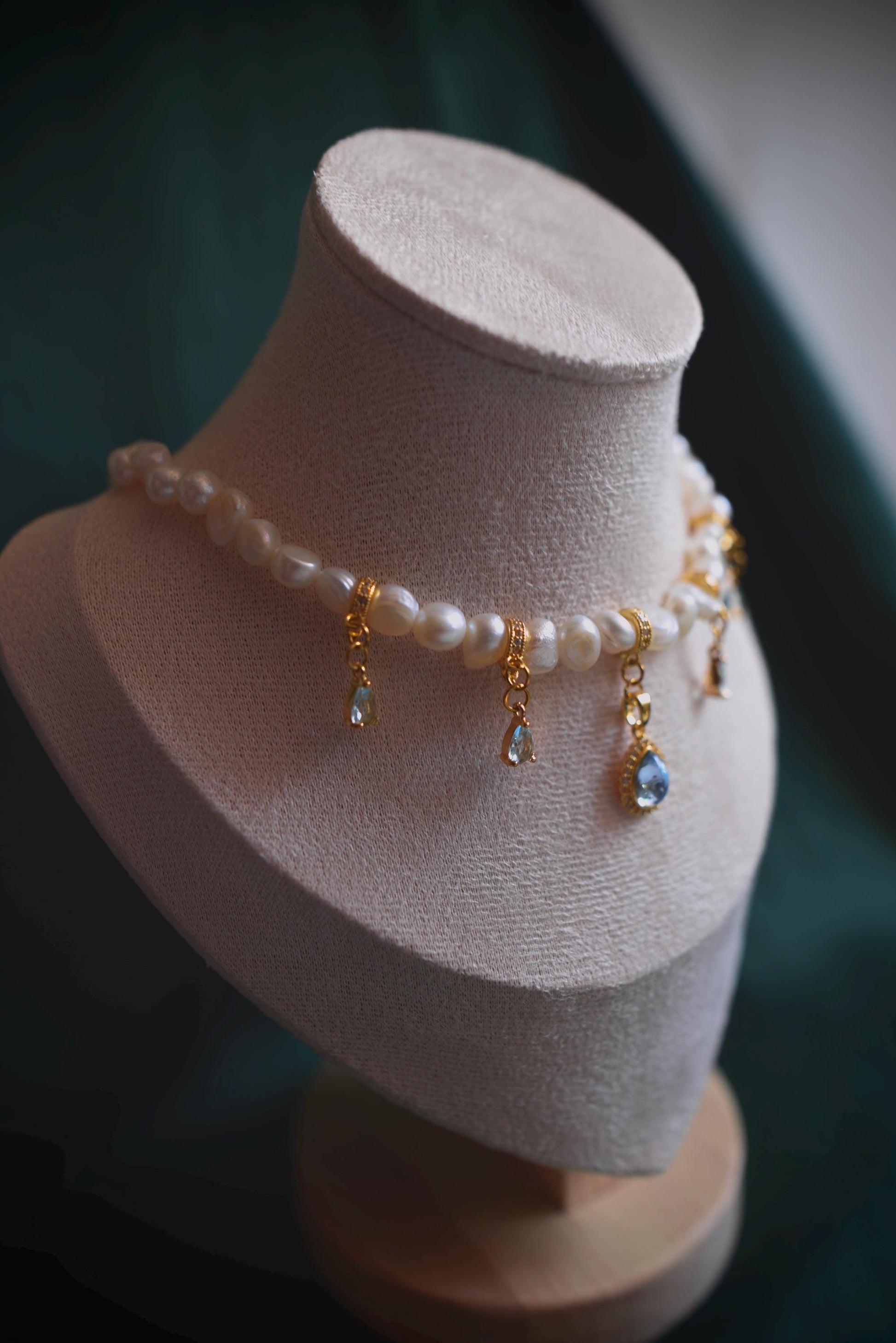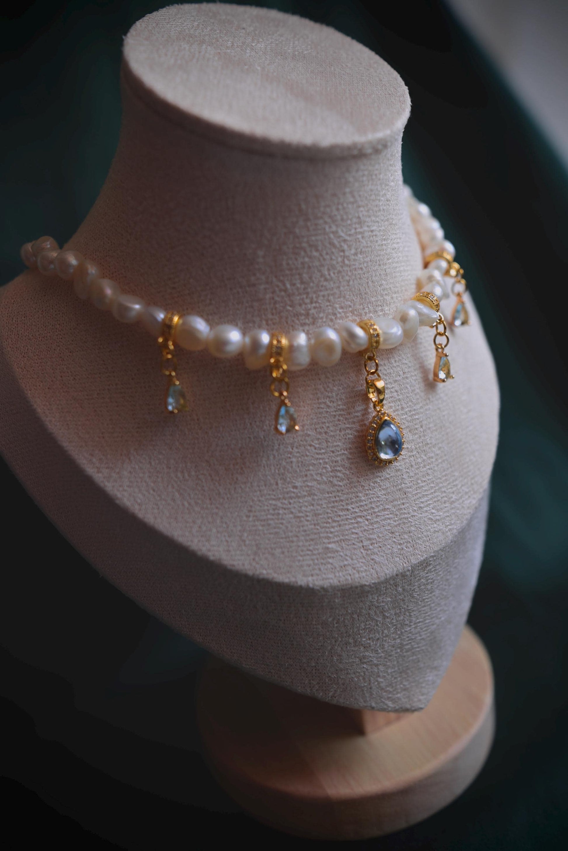 Süßwasserperlen, begleitet von tiefem Mitternachtsblau – leise, weich und von beständiger Klarheit.